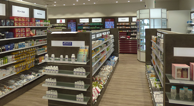 Apotheke neu erleben: In der Apotheke am Henninger Turm erwartet Sie ein modernes Ambiente auf einer großzügigen Beratungs- und Verkaufsfläche mit vielen unterschiedlichen Themenbereichen.